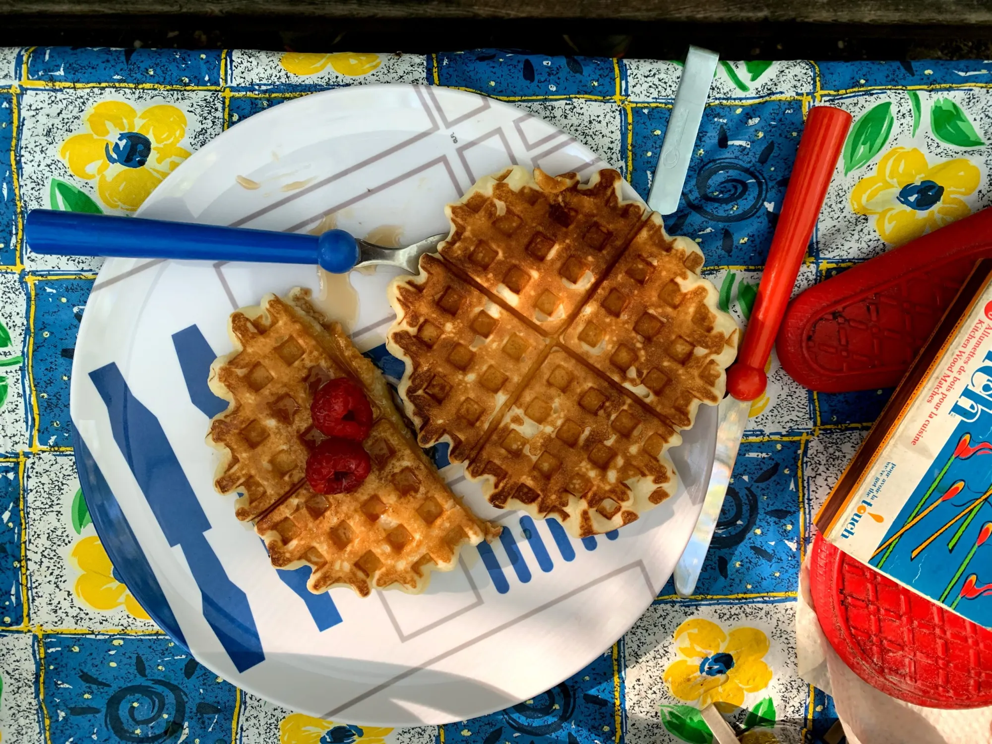 Recently, and thanks to an amazing find at one of our local camping shops, that hearty breakfast has included fresh campfire waffles.