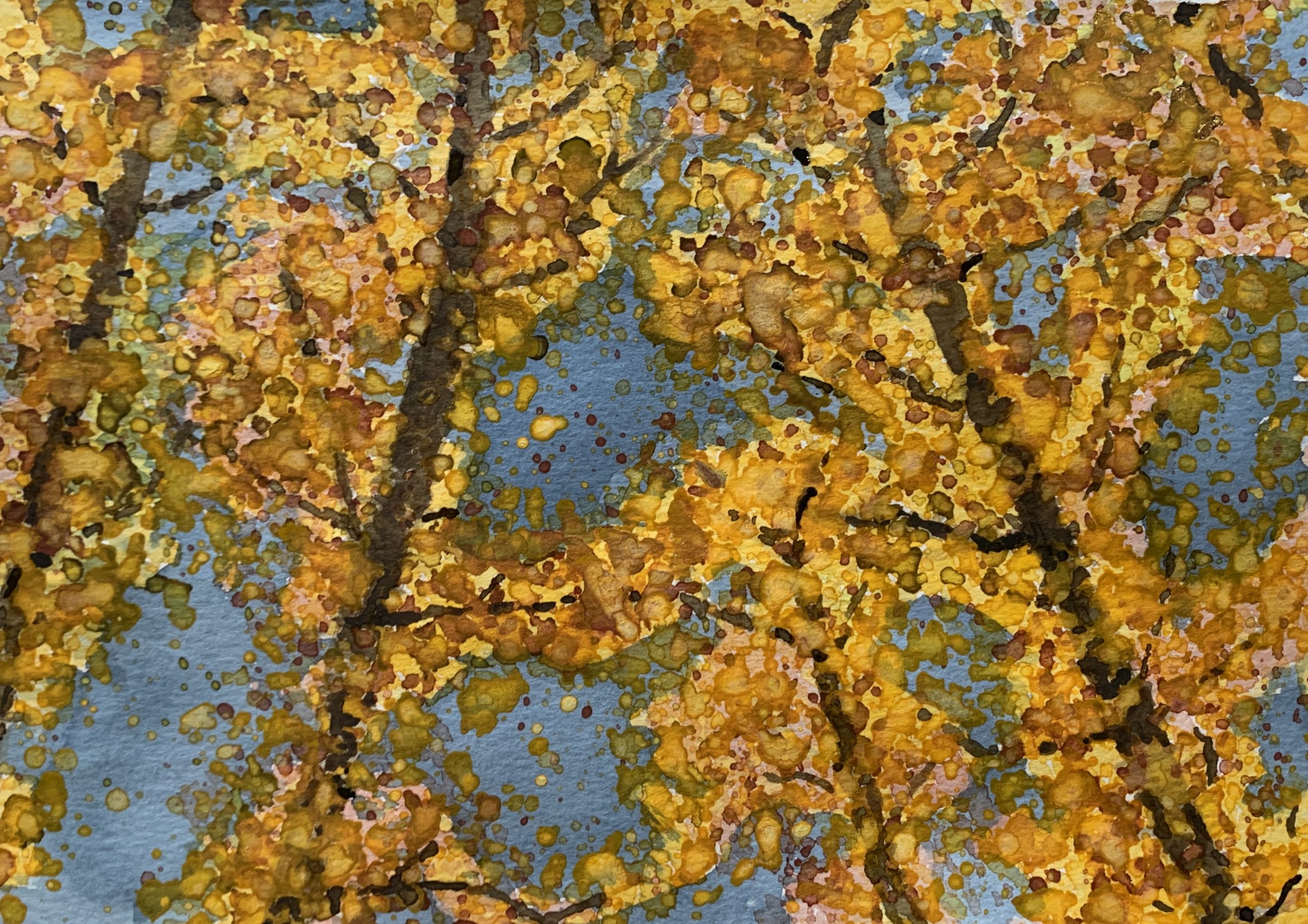 There wasn’t really a moment when it popped, but at some point I started to feel the persistent meddling in the finality of this piece had begun to pay off, transforming the random shapes into something closer to what I held in my mind’s eye, that reference image captured in my memory as I stood on a river valley trail gazing up into the orange canopy of leaves overhead.