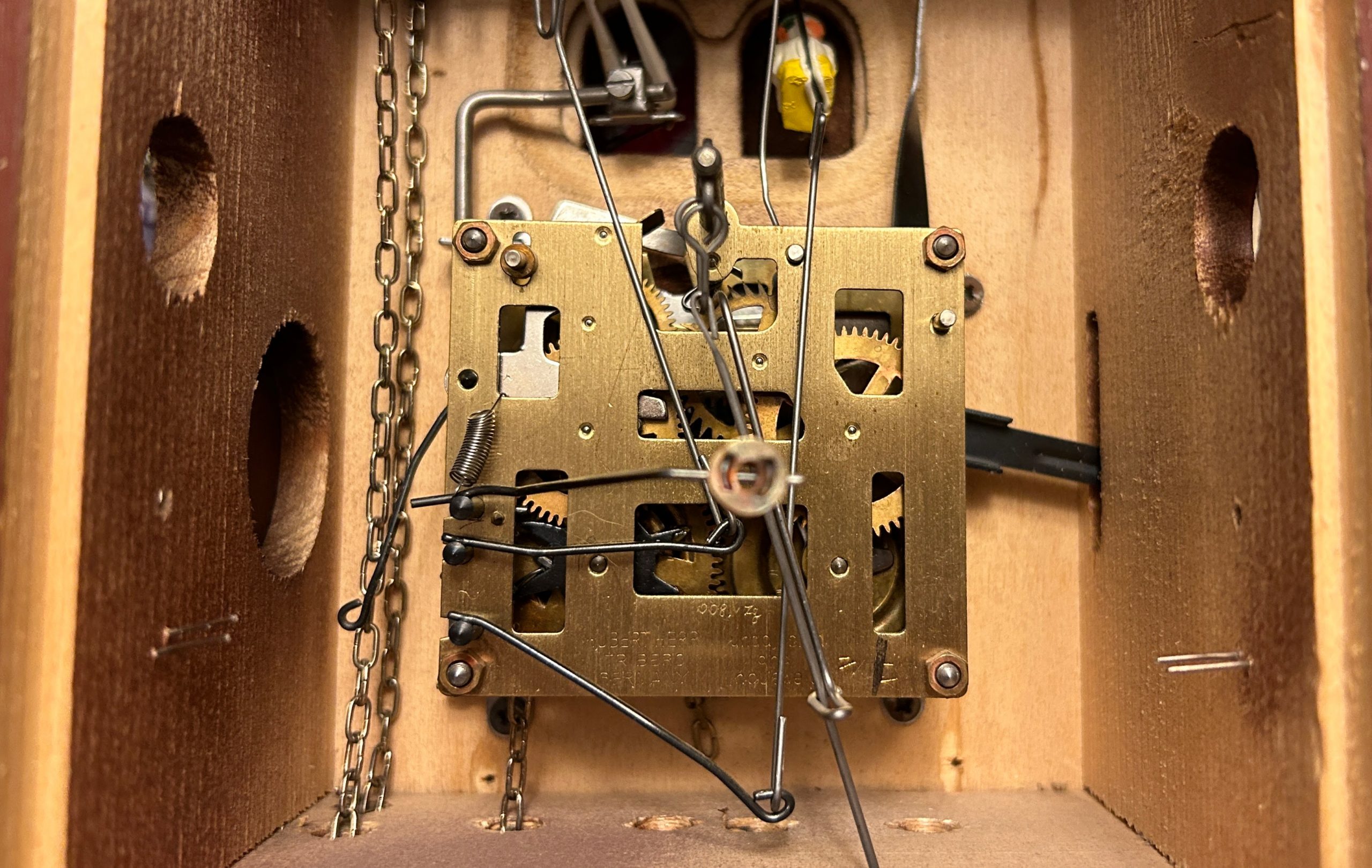 I opened it up to see if there was something obviously wrong, but clock works are not my specialty (nor, if I’m being completely honest, a thing that I have anything other than a passing experience) in diagnosing or fixing.