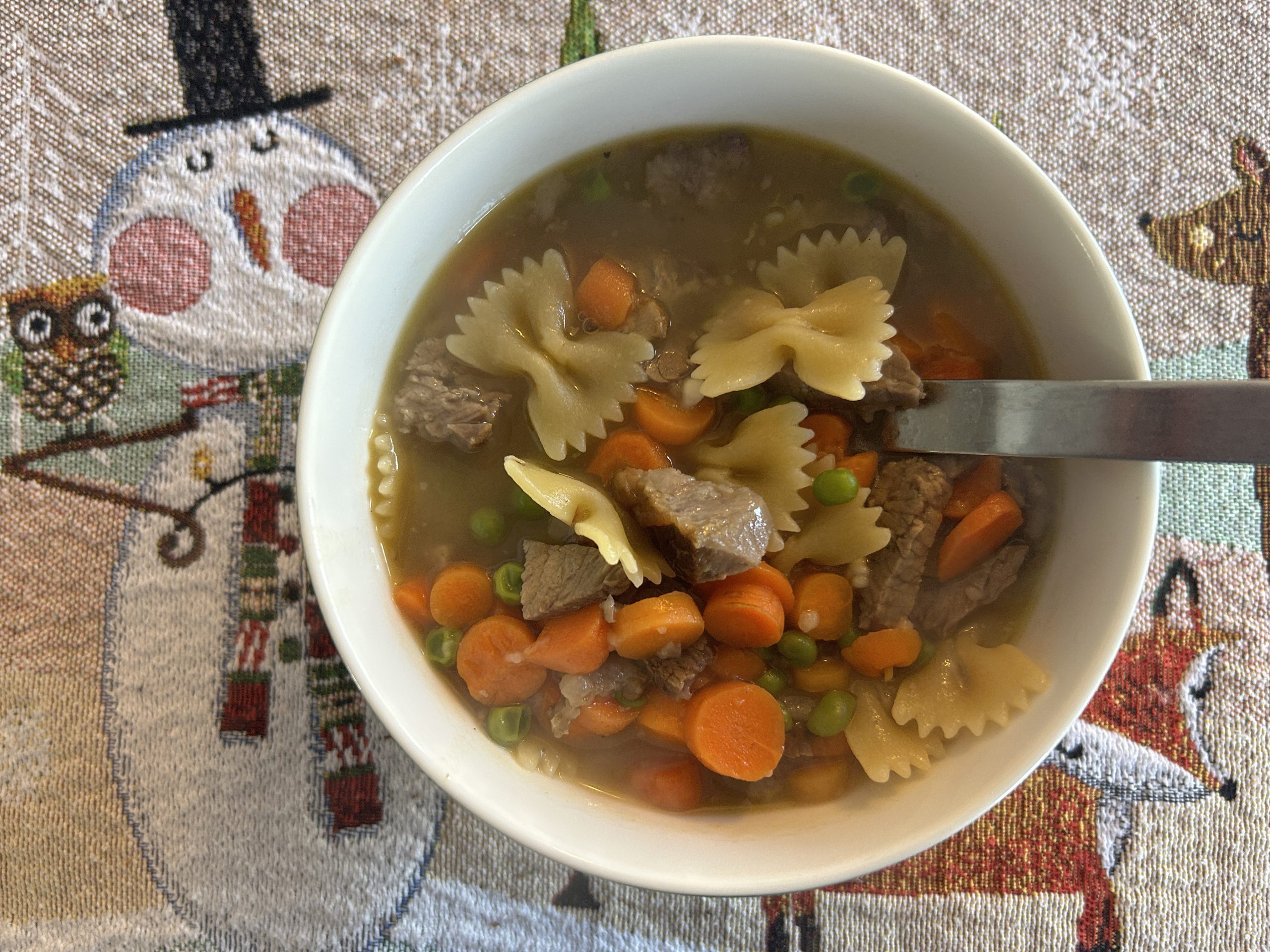 For example, the scratch soup I made recently from my (also recently) made beef stock looked a little something like the photo below: