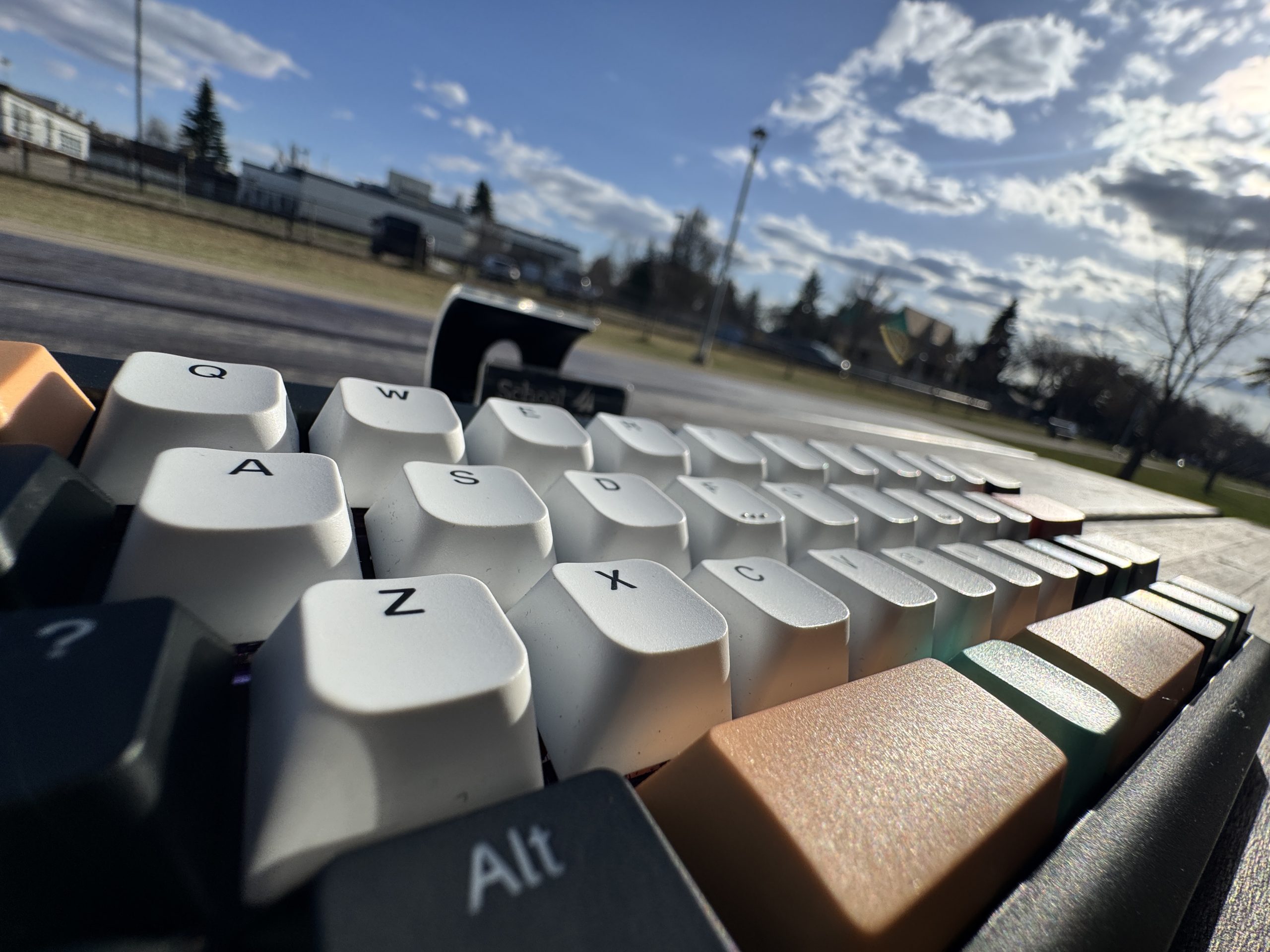 About a year ago I bought myself this little portable mechanical keyboard. Well, in fact I bought two of them, each for very different purposes. First, I bought a really nice one that is amazing to type on and which I carry in a little bag along with my iPad when I go off to a cafe to write. It’s wonderful. Clicky. Solid. Durable. And no I’m not selling them. But then I also bought a cheaper, smaller keyboard. It’s not quite as nice, though still pretty nice, and its a lot more plasticky, and it tends to live in the glove box of my truck. It is a little trickier to type on, I will admit, mostly because it is lacking about twenty of the more familiar keys like number digits and punctuation marks, and when I need them I need to access those with little function key combos that also make it a bit cryptic to type on, but I use it even more than I thought I would, squeezing in a session of writing before work or, like now, sitting in a park at a picnic table waiting for the run crew to arrive and taking these twenty free minutes to pound out a blog post.