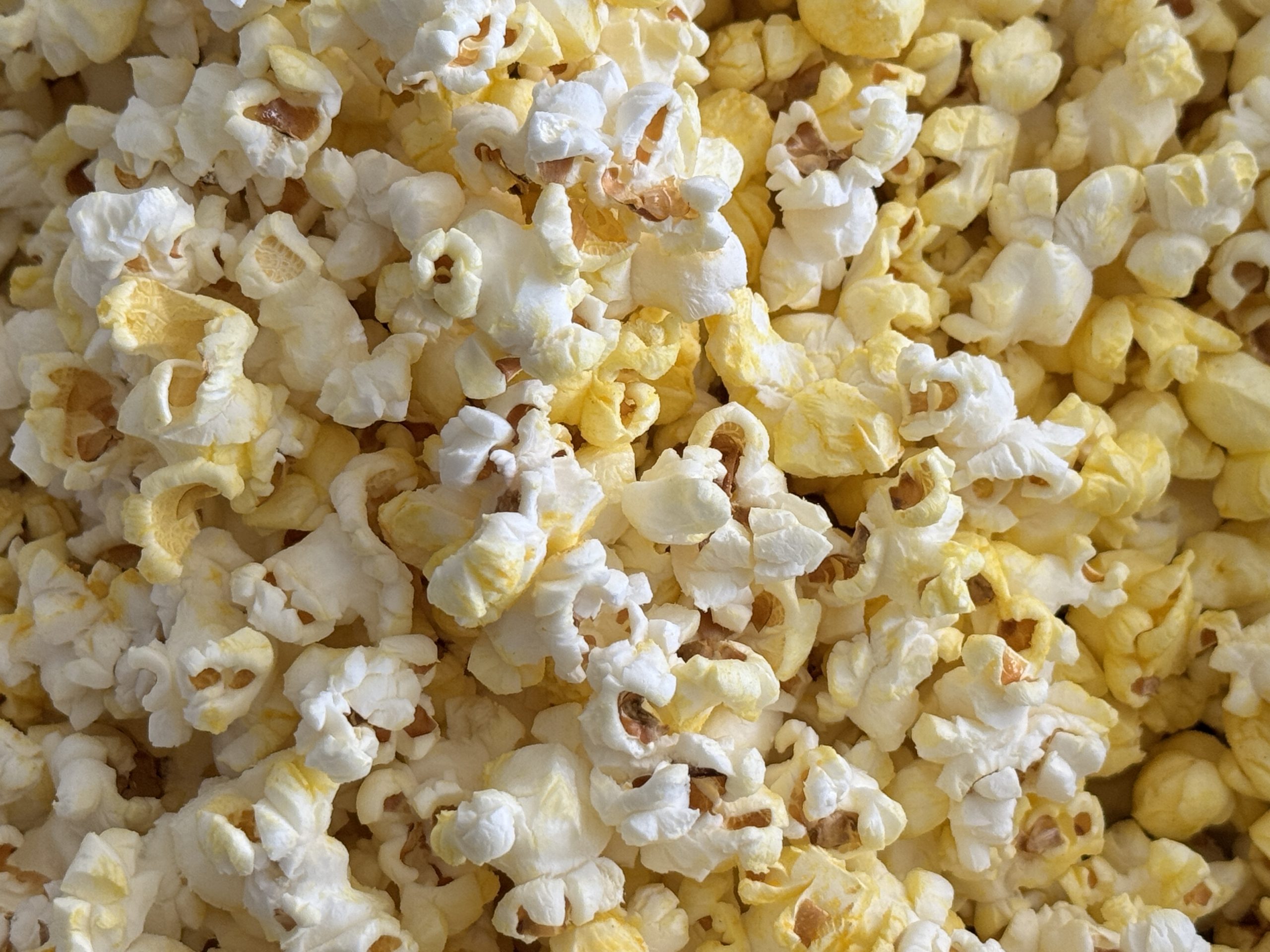 We had an air popper, and we would melt (I want to say butter, but it was probably) margarine over it and then sprinkle table salt into the mix. It had a vibe. It was what I knew. And yet, by the time I was about fourteen I was already going to the movie theatre with some regularity and had figured out that my parent’s secret popcorn recipe was not a thing like the bag of deliciousness we scored when we went out.
