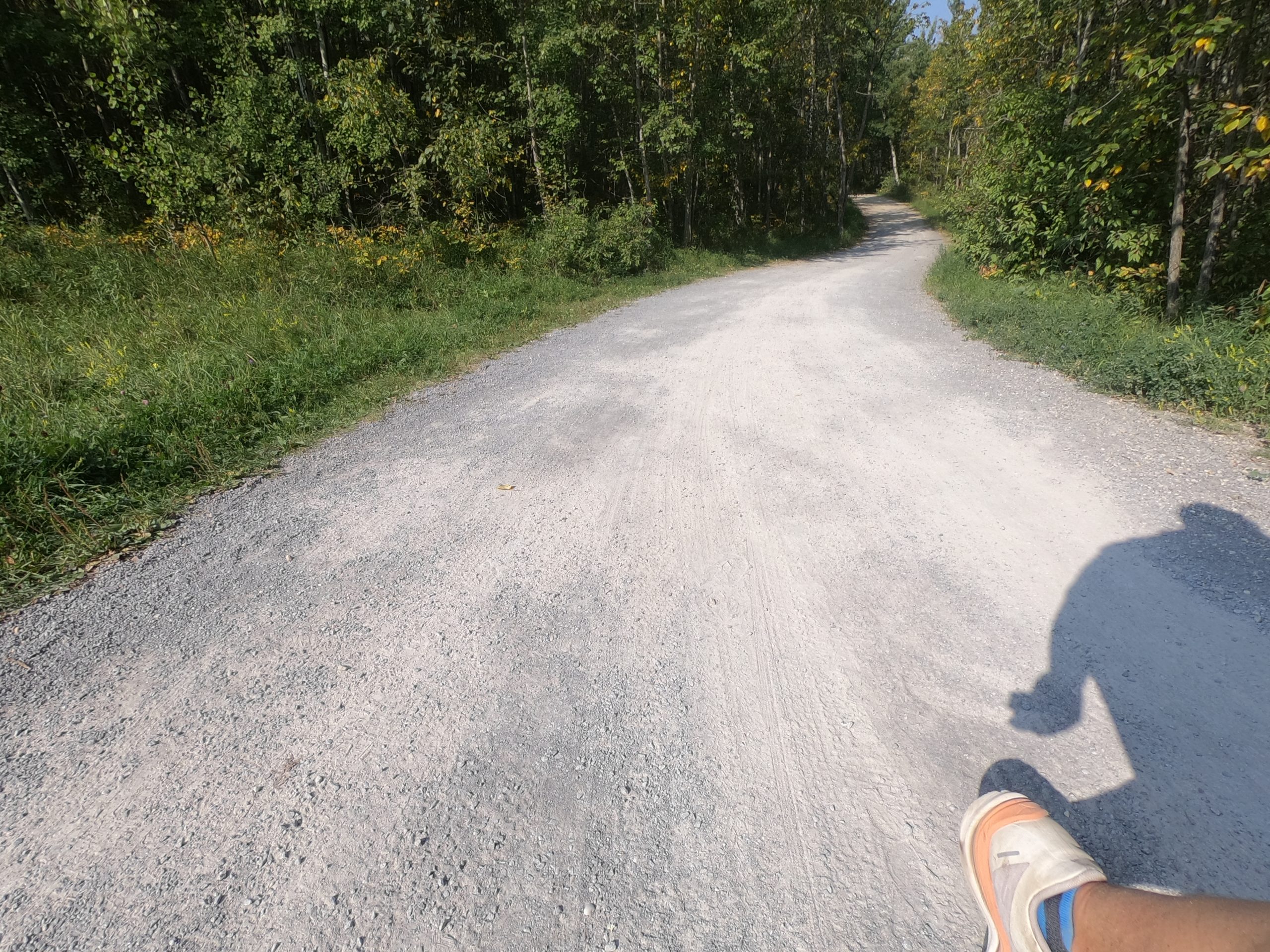 Friday, I was feeling adventurous and up for an afternoon solo, so I drove down to the dog park and did some trail running across the river in the wilds. I logged about six klicks on the flat wilderness run, which was a bit of an homage to RM who had started a hundred mile ultra that same morning down in the south of the province.