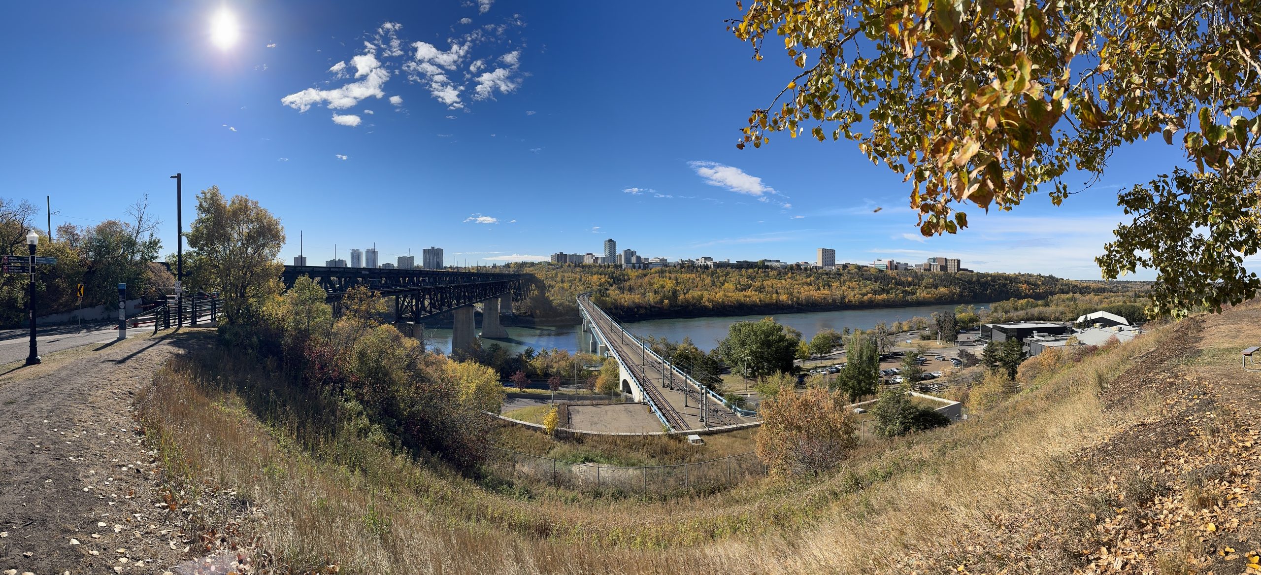 My first view was from Kinsmen park below the high level bridge. I missed the glory shot of the streetcar traversing, but I did sit down here for a while sketching.