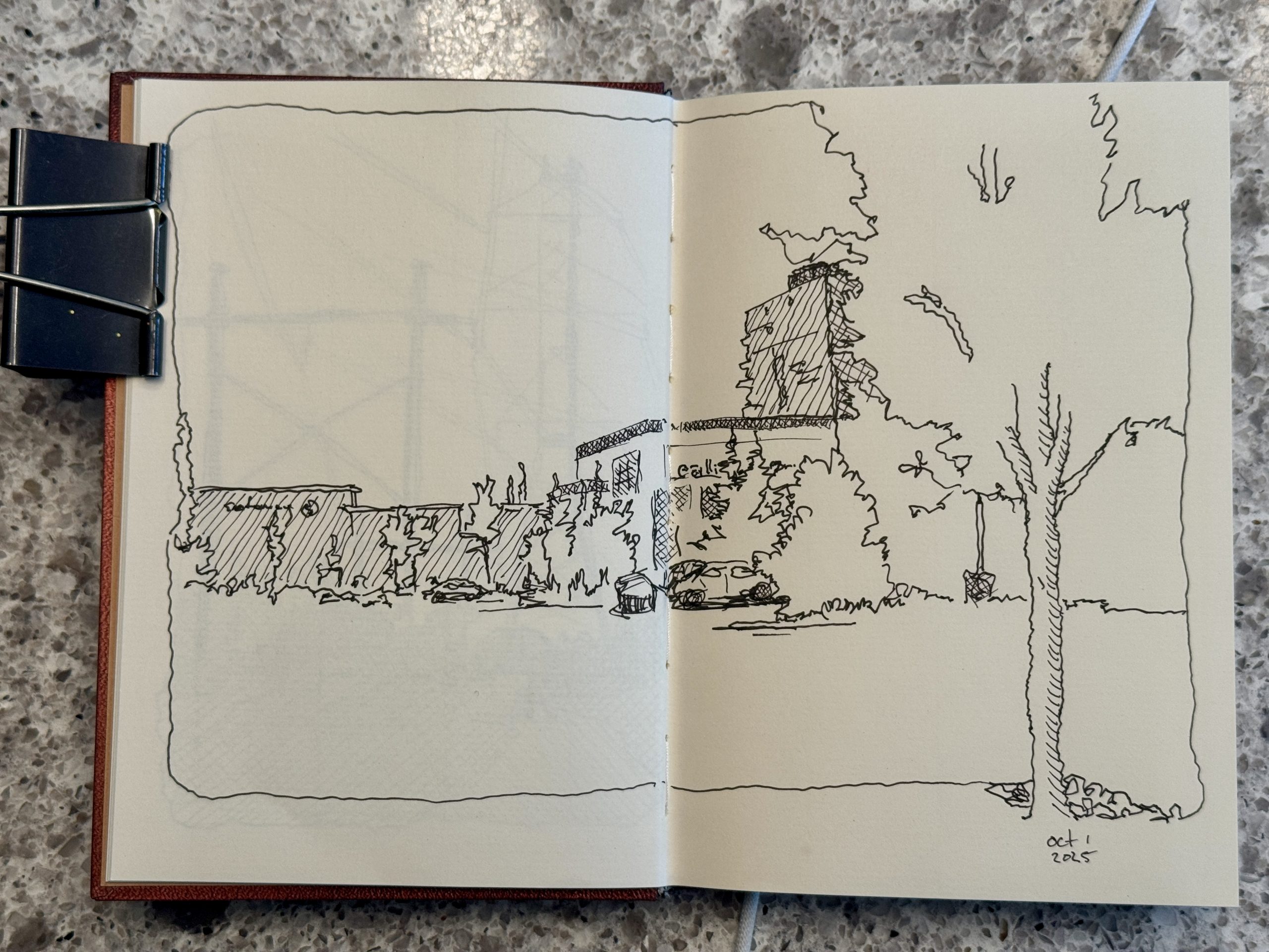 And I have drawn in one of my bougie books thrice, contributing there to my daily challenge requirements of a sketchy urban sketch.